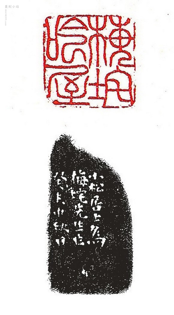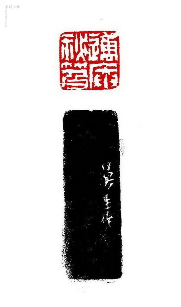 篆刻继“西泠前四家”之后开浙派新面,运刀如雷霆万钧,苍茫浑厚,豪迈自如,后之学浙派者多有取法。与陈豫钟齐名,世称“二陈”。此“迈庵秘笈”白文印为典型陈曼生风格,篆法以方整出之,在大胆的行刀过程中不求笔画之横平竖直,曲直宽扁一任自然,浑厚跌宕,古拙浪漫,气度逼人。此印亦曾收录于《丁丑劫余印谱》中。
