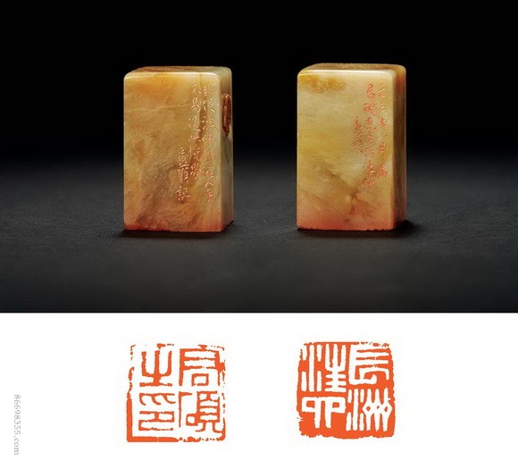 边款:1.非从汉印封泥入手,不易造此境界,粪翁记。2.二十三年八月为君硕先生仿汉印,粪翁。
