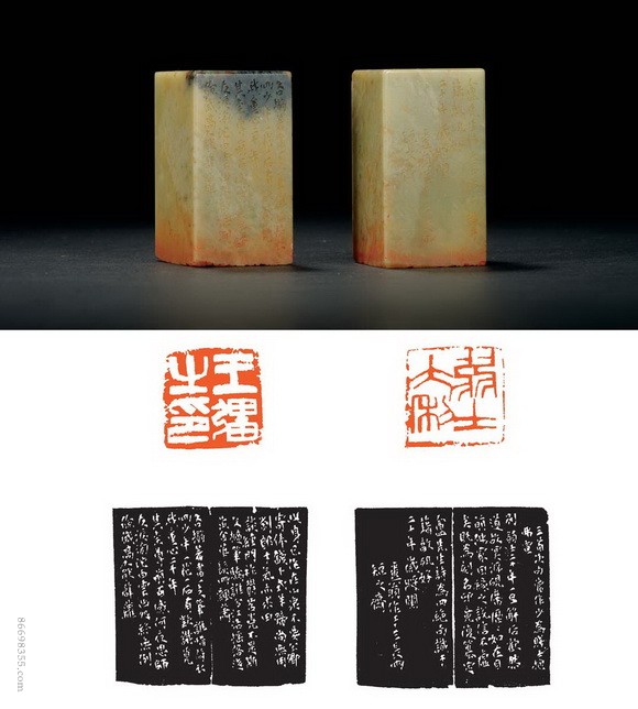 5136 邓散木刻青田石王南亭自用对章