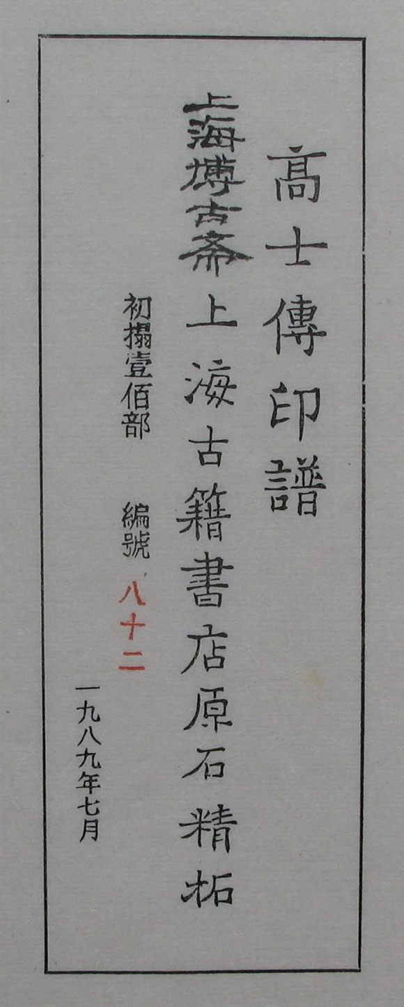 该印谱曾于二十世纪七十年代由台湾香港联合出版。本印谱为上海古籍书店精选邓散木篆刻作品,原石钤拓成谱,共一百部,以飨读者。
