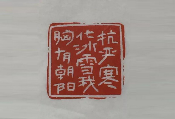 所谓简化字入印,实际上是一门难度颇高的印章创作形式。它既要具有娴熟的刀法和合理合度的字法和章法,更重要的,是能够充分传递传统印章中的刀笔意蕴和由此而生的丰富内涵。从这一点上说,它的创作难度也许并不亚于以篆书入印。早在上世纪六十年代,去疾先生便已开始了这方面的大胆实践,当时他所创作的若干以毛主席诗词为主题内容的如“宜将剩勇追穷寇、不可沽名学霸王”、“敌军围困万千重,我自岿然不动”和“收拾金瓯一片、分田分地真忙”等印作,至今读来仍逸趣横生令人久久回味。如此看,以现代文字入印的创作方式,虽说客观上受到其自身结体和习惯笔意的局限,但若运用得当,照样也能创作出高水准的印章作品来。多年以后,先生依然兴致勃勃意犹未尽地与我聊起简化字刻印的话题,并且还谈到不少新的设想。只可惜,由于病魔长期折磨,使他再也不能拿起心爱的印刀来。