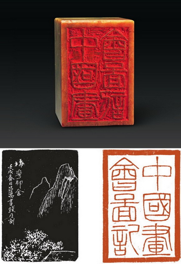 其篆刻,在弹丸之地分朱布白,随意自在,触处成春,用刀因势生法,如渔人荡桨,浪翻涛涌,益显出坦达雄强的气度。篆刻初从汉印入手,后得吴昌硕亲授,艺事大晋,继而又在周秦金石文字以及唐宋印上吸取养分,钝刀硬入,浑朴古茂,曲尽变化,自创一格。