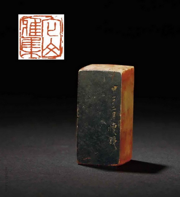 边款:1.叔厓。2.叔厓为天健作。3.瘦铁辛酉五月。4.辛酉三月凿于沪。5.天健印,叔厓刻,丁丑五月十八日。