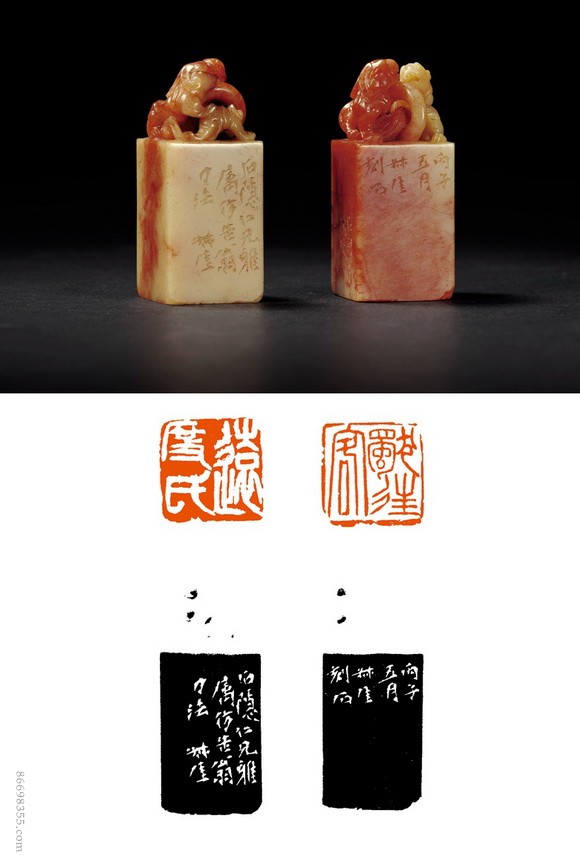 3307 钱瘦铁刻寿山高山石长尾甲自用对章