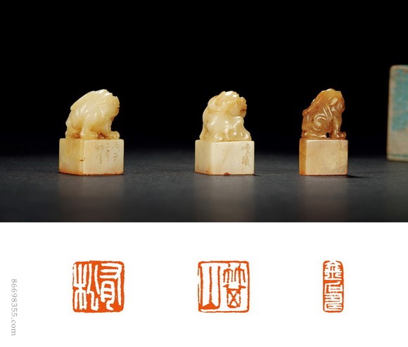 3718 钱瘦铁刻寿山石古兽钮章三方