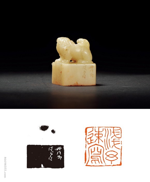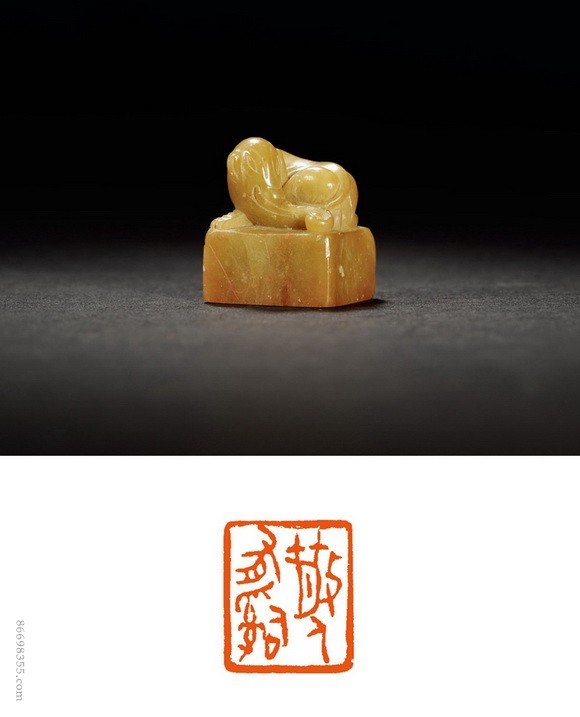 3959 钱瘦铁刻子母兽钮寿山白芙蓉石叶浅予自用印
