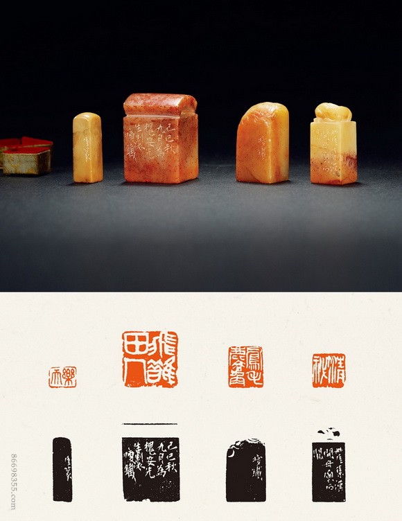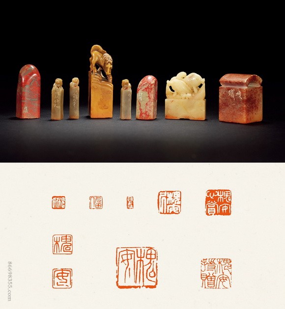 4309 钱瘦铁等刻寿山、昌化鸡血石槐安居主人用印八方