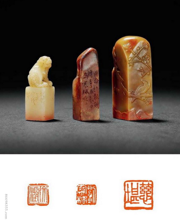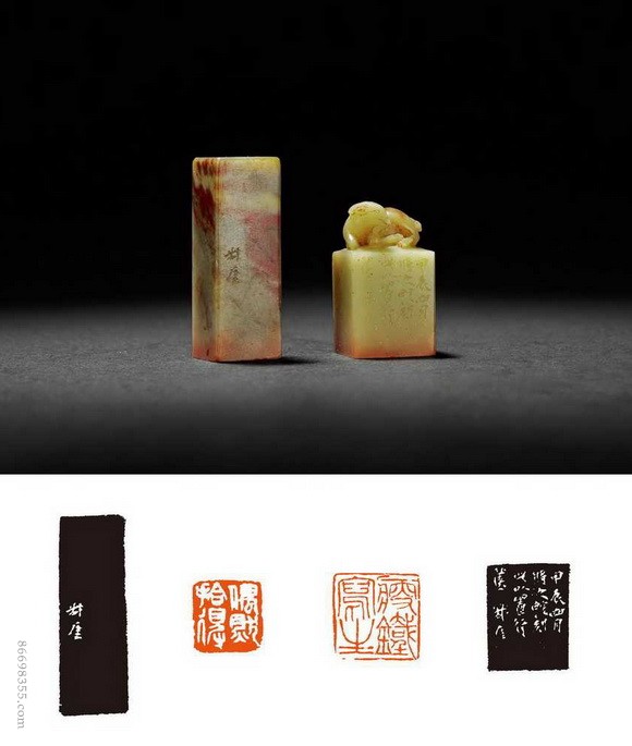 1765 钱瘦铁刻昌化鸡血、青田石自用印二方