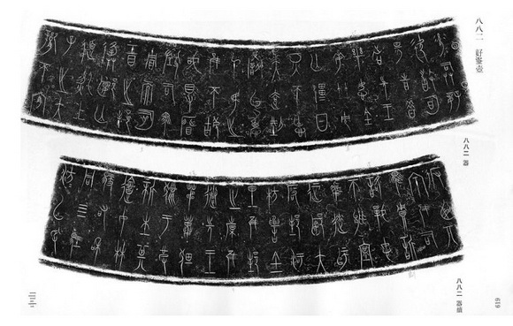6.中山文字。中山国属狄人鲜于部,嵌于燕晋之间,后为燕赵之间,一直被中原诸夏视为心腹大患。中山国受中原文化影响较深,姓姬姓,参与过合众伐秦。现在所见中山文字为中山王青铜器,战国时代,各国铸器己少有铭文,唯有中山王器上铸有大量铭文,字形风格也与春秋金文接近。