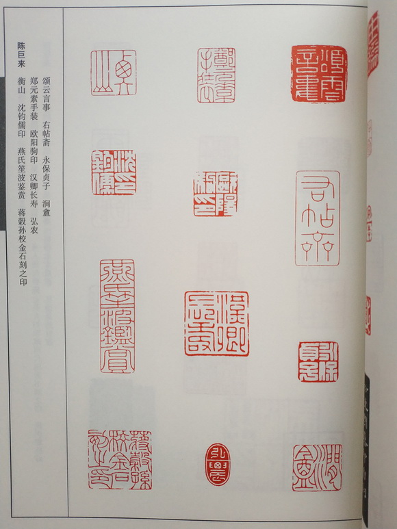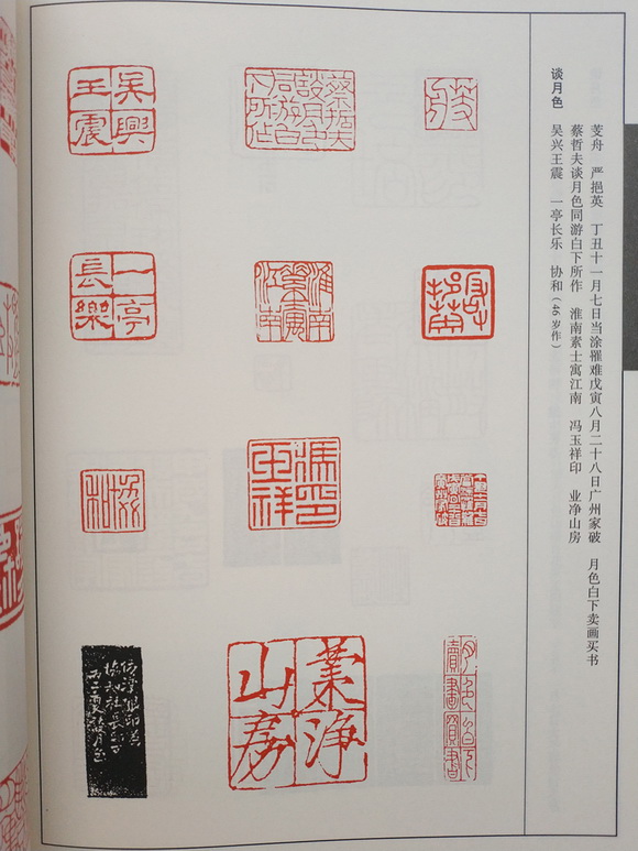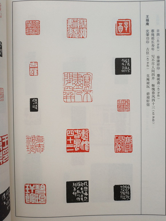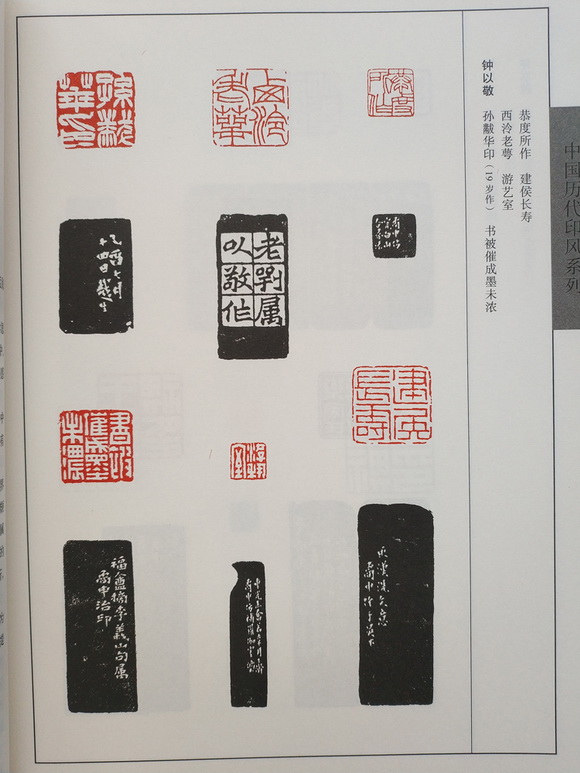 钟以敬印54方,款52方;赵叔孺印188方,款115方;王福庵印469方,款115方;唐源邺印161方,款30方;谈月色印72方,款9方;沙孟海印109方,款97方;方介堪印123方,款32方;韩登安印165方,款34方;陈巨来印173方,款15方;叶潞渊印79方,款46方;吴朴堂印165方,款43方;