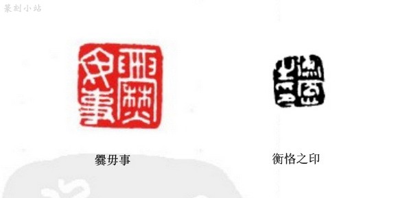 观陈师曾所遗印谱,仅自用印章就有几十方取法秦汉印风格。这部分作品中,有的匀停方整,如『别奏肤公』和『路孝植印』;有的疏密虚实,多有情趣,如 『爨毋事』和『衡恪之印』;亦有取法汉凿印浑穆雄强、凝重拙厚一路风格的作品,如『循吏世家』和『更有不知近处』印;还有取法汉凿印中挺劲痩厉、简直宽绰风格的『杨昭儁之章』和『豫章陈氏』,可见其对秦 汉印体悟之深、用功之勤。
