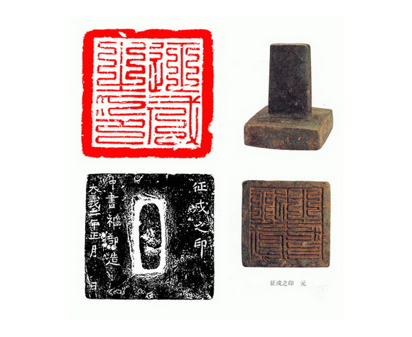 金元官印,九叠篆入印盛行,整齐大方篆法流畅秀丽自然 元.征戍之印 81×79 mm 上海博物馆藏 征戍之印,铜质橛钮,背款三行,分别作“征戍之印”.“中书礼部造”.“大义二年正月日”。 元至正十九年(1359年)五月,陈友谅取代徐寿辉,建元太义,成了湖北江西一带的红巾军的首领。 据陆深《豫章漫抄》:“戊戌(1358年),红巾徐贞一下(江州),陈友谅始据江西,时改元天启。明年己亥(1359年)为天启二年,四月又改天定,五月陈友谅自称太义元年。” 页码: 页 1, 页 2, 页 3, 页 4, 页 5, 页 6, 页 7, 页 8, 页 9 印谱.教程.技法 - 分享 加微信获取:wenbaozhai365