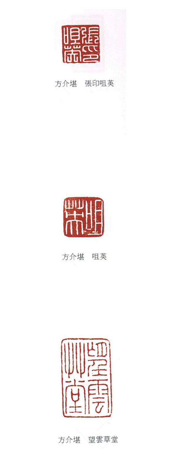 方介堪(公元1901—1987年)名岩,字介堪,后以字行。方家世居浙江省泰顺县,祖父方养卿为进府学读书,始着籍永嘉(今浙江省温州市)。篆刻师赵时棡,能以文物铭文入印,于秦汉印中尤精玉印鸟虫篆,作品浑穆遒劲,在当代印坛中负有盛名。