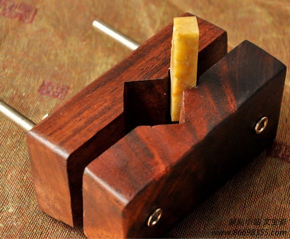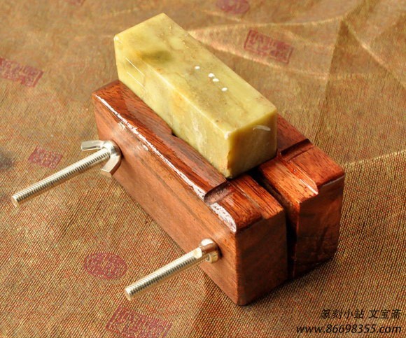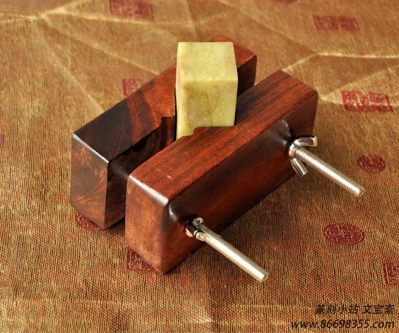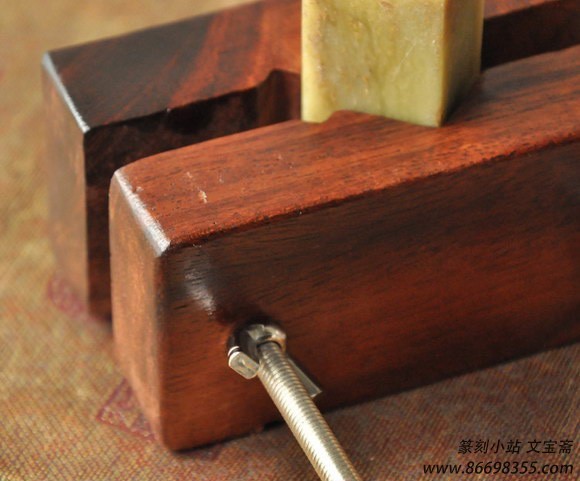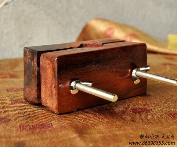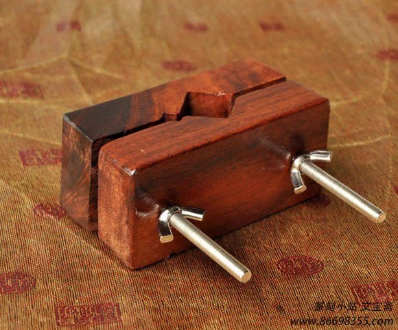 三大创新,日式多功能井字篆刻印床,红木印床篆刻夹具 三大创新设计,引领印床设计新趋势!一、双卡口设计:印床中部设有一大一小两个卡口,以用于夹持不同规格印石,小卡口可固定2CM见方以内印石,大卡口可固定2CM见方以上印石。二、辅刻边款功能:印床表面特别设计了5MM深的长凹槽,以用于固定平躺之印石,方便刻制边款,解决了精细印石直接摆放在毛毡或桌面容易产生划痕的问题;三、搁笔功能;在小卡口外侧制作了一个半圆小凹糟,可用于搁置篆刻小毛笔,解除在印稿创作过程中无处搁笔的烦恼。 印谱.教程.技法 - 分享 加微信获取:wenbaozhai365