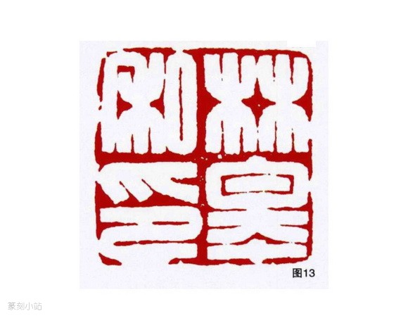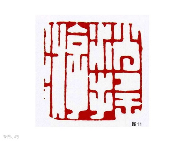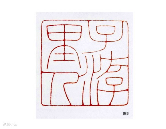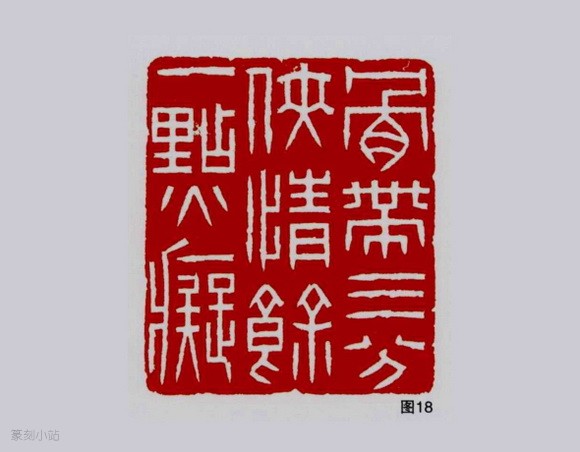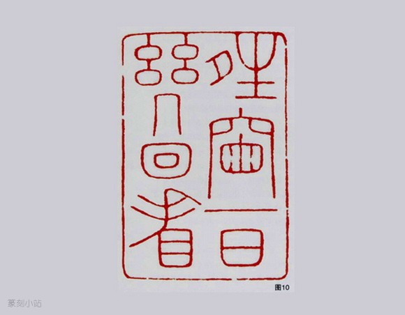 “晴窗一日几回看”印,章法、冲刀、 边栏几乎毕肖,篆法基本一致,用 心审察,仅“窗”字下部篆法稍改;