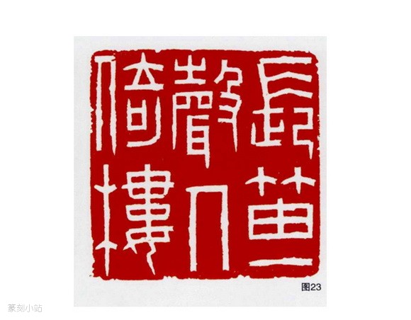 艺术大师的功力并非一定要在 剑拔弩张中才能体现,更毋庸靠“醉 笔”、“醉刀”或“花脸”、“杂耍” 来故弄玄虚,在林皋篆刻平和超迈的 境界中我们一样能感受高超的艺术境 界,且更加回味无穷。