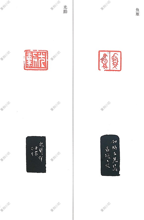 吾友陈秋堂、曼生,皆以馀事工篆刻,皆法汉人,交相推挹。高君犀泉,曼生妻弟 也,顾深服秋堂,赵君次闲,秋堂之高弟,乃喜用曼生法。两人闻之,亦交相得也。大 抵秋堂贵绵密,谨于法度,曼生跌宕自喜,然未尝度越矩镬。余不工此,而议论每为两 君所许可。秋堂早逝,曼生、犀泉相继物故,今之言篆刻者,不次闲之归而谁归乎?次 闲既服习师説,而笔意于曼生为近。天机所到,逸趣横生,故能通两家之驿,而兼有其美。 记在杭时,曼生与次闲合作两小印,勒款于左,为六丁所取,念之不去于怀。昌黎有言, 思元宾而不见,见元宾之所与,则如见元宾焉。(清郭鏖《补罗迦室印谱序》)