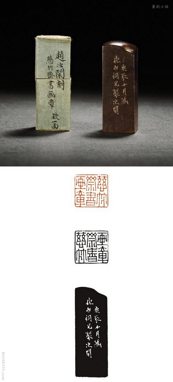 出版:1.《履盦藏印选》P22,台北出版,1997年。2.《赵之琛印谱》P25,上海书店出版,1992年。3.《西泠后四家印谱》P57,西泠印社出版,1982年。4.《西泠八家印选》卷三P49,丁辅之1925年编。5.《丁鹤庐西泠八家印存稿》P28,日本出版,2003年。6.《丁丑劫余印存》卷八P29,1937年编。