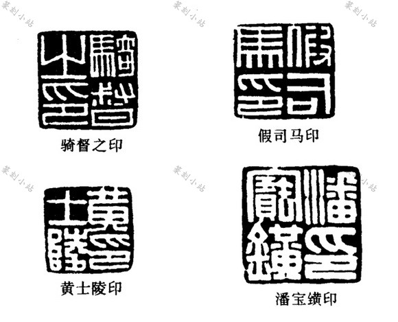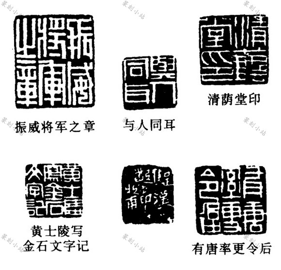 “骑督之印”、“假司马印”、“振威将军之章”三印为黄牧甫華汉之作。无论在形式、刀法,还是精神、气息,皆与古物无二。由此可见黄牧甫于汉印用功之深。在刀法上骑督之印”的苍劲挺健、“假司马印”的光洁方峻、“振威将军之章”的浑厚凝重, 皆表现得淋漓尽致,值得人们揣摩。