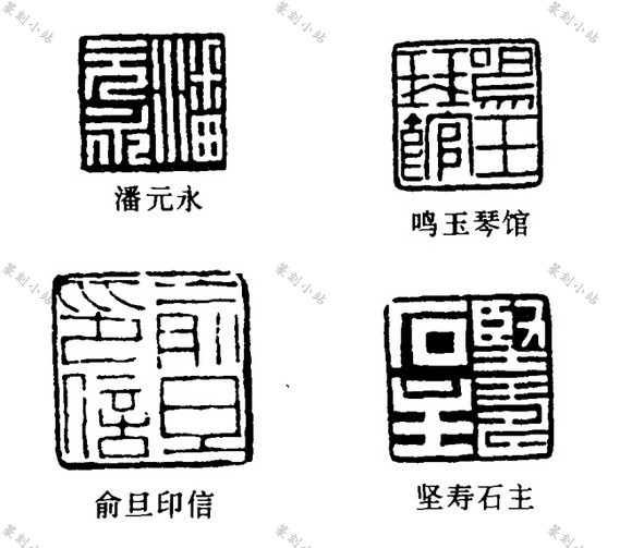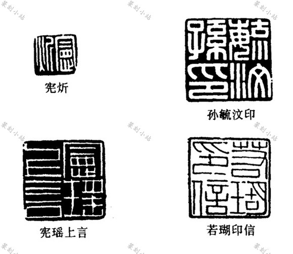 “孙毓汶印”、“潘元永”、“宪瑶上言”三印为仿汉玉印法,轻松自如。三印用刀略 有不同,虽同为冲刀,一润洁、一劲健、一锋锐。皆为上乘之作。