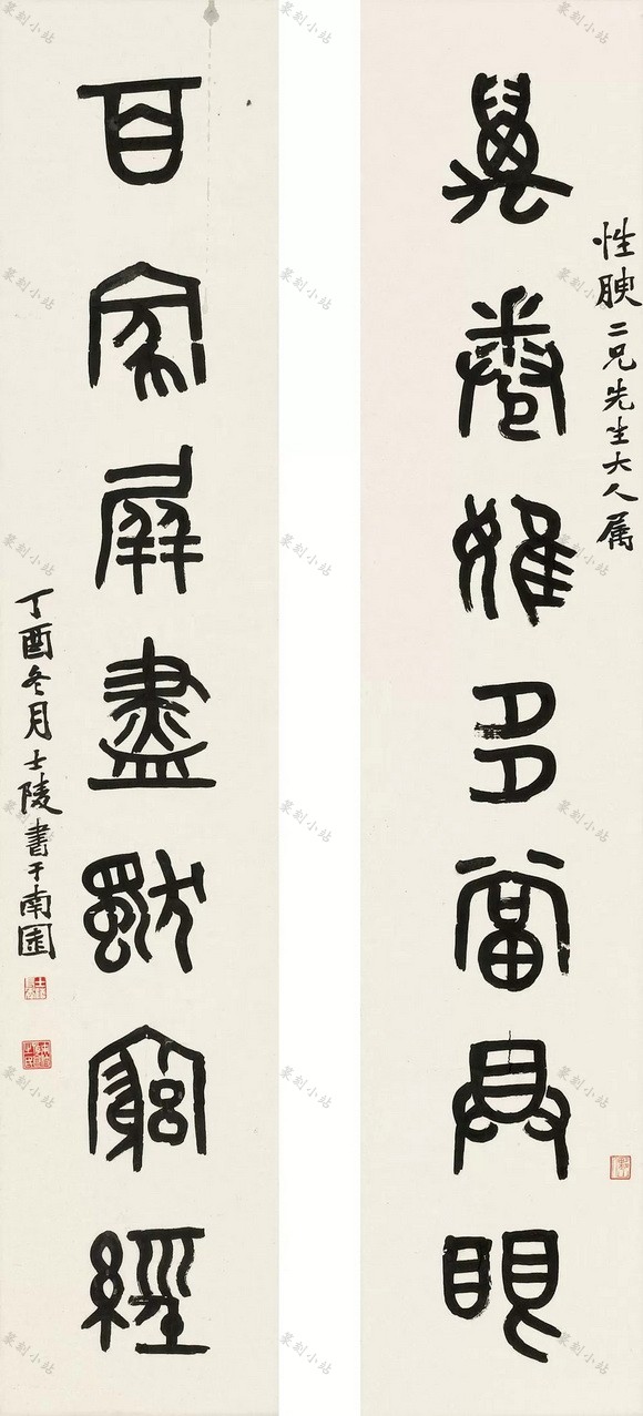 题识:性腴二兄先生大人属,丁酉冬月士陵书于南园。