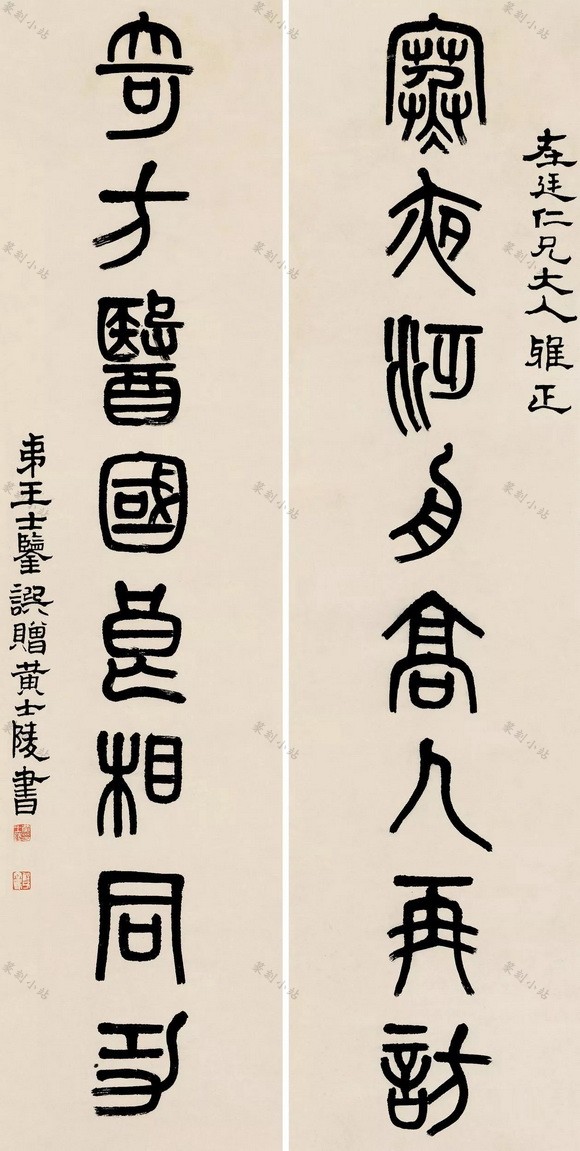 款识:在廷仁兄大人雅正,弟王士鉴譔赠。黄士陵书。