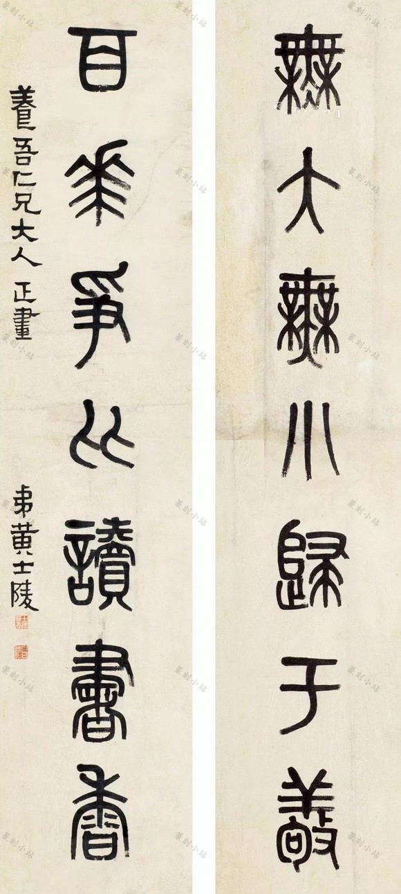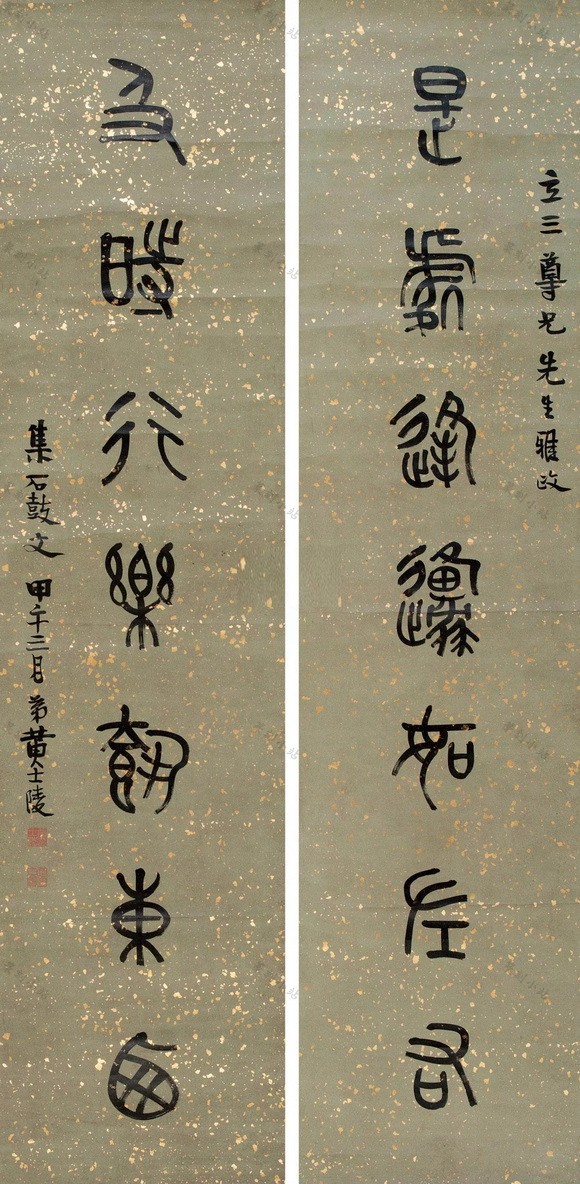 1570 甲午(1894年)作 篆书七言联 对联 洒金笺