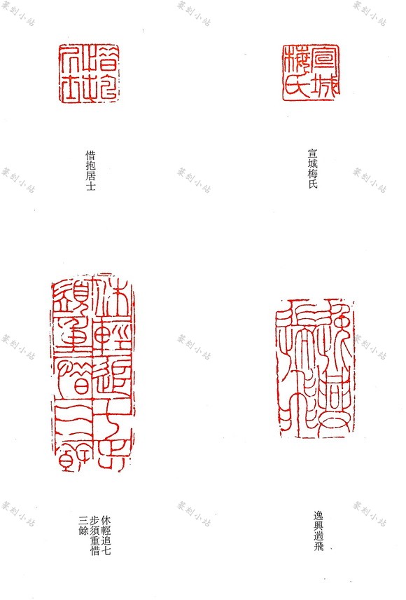 邓石如印作集粹,依书法笔意入印,以婉转圆朱文最突出
