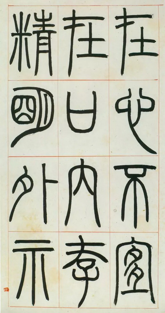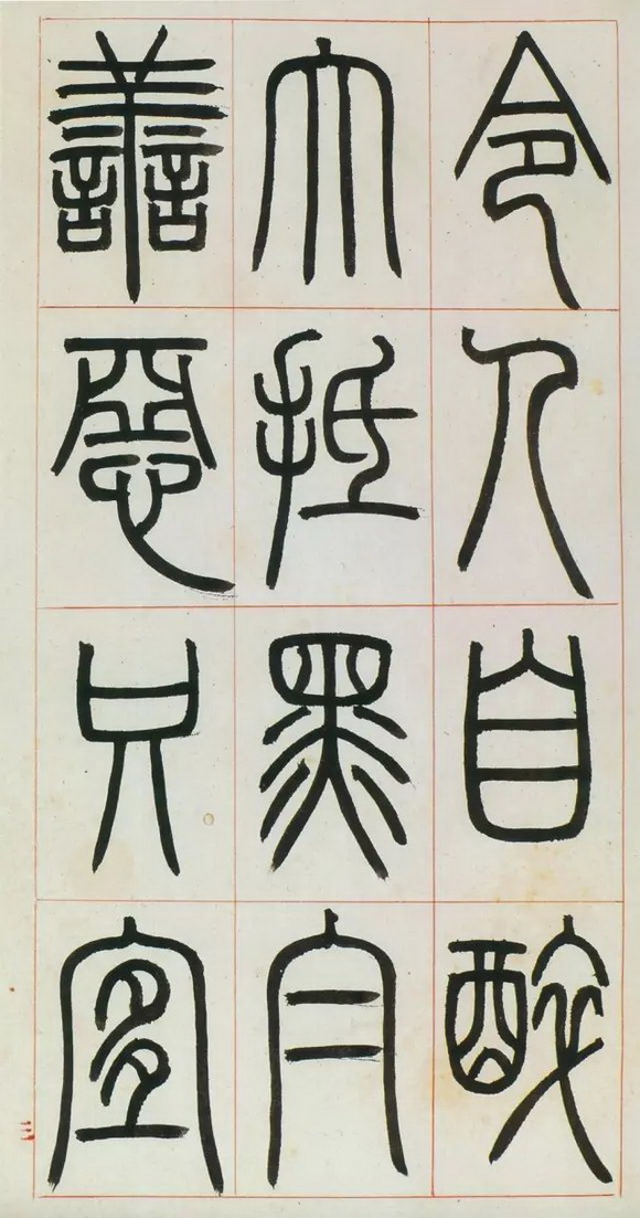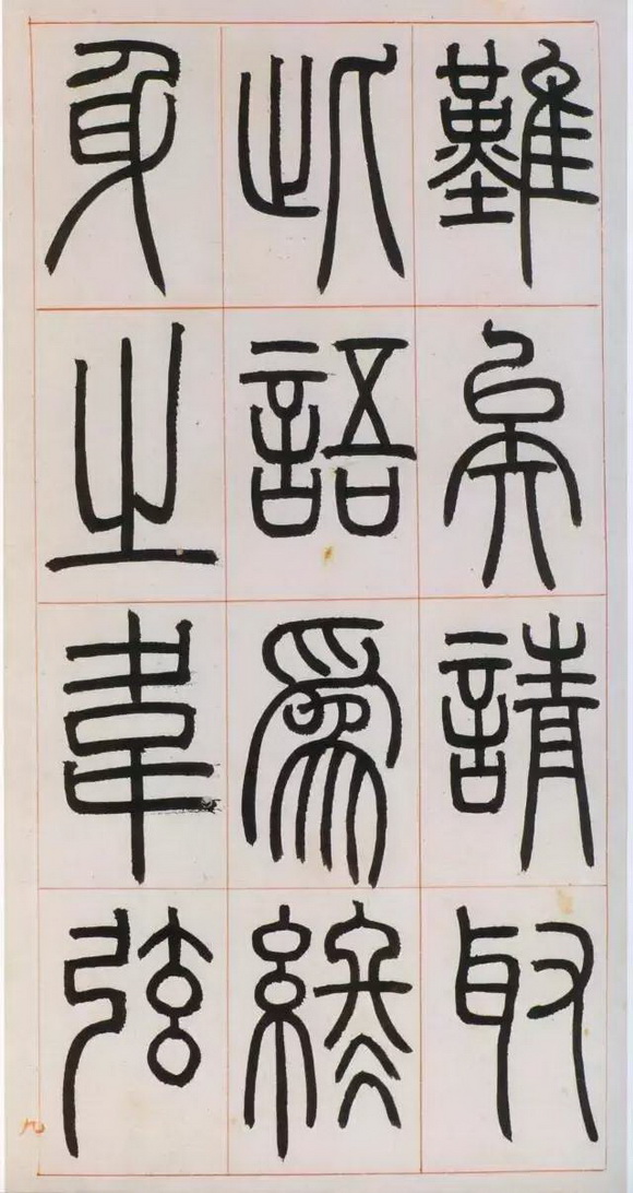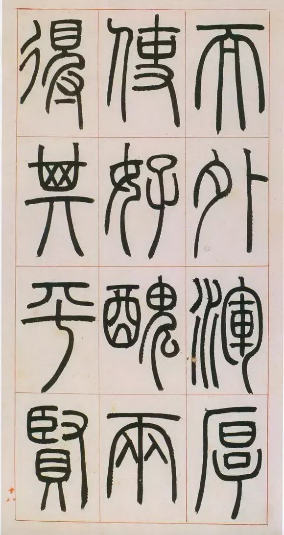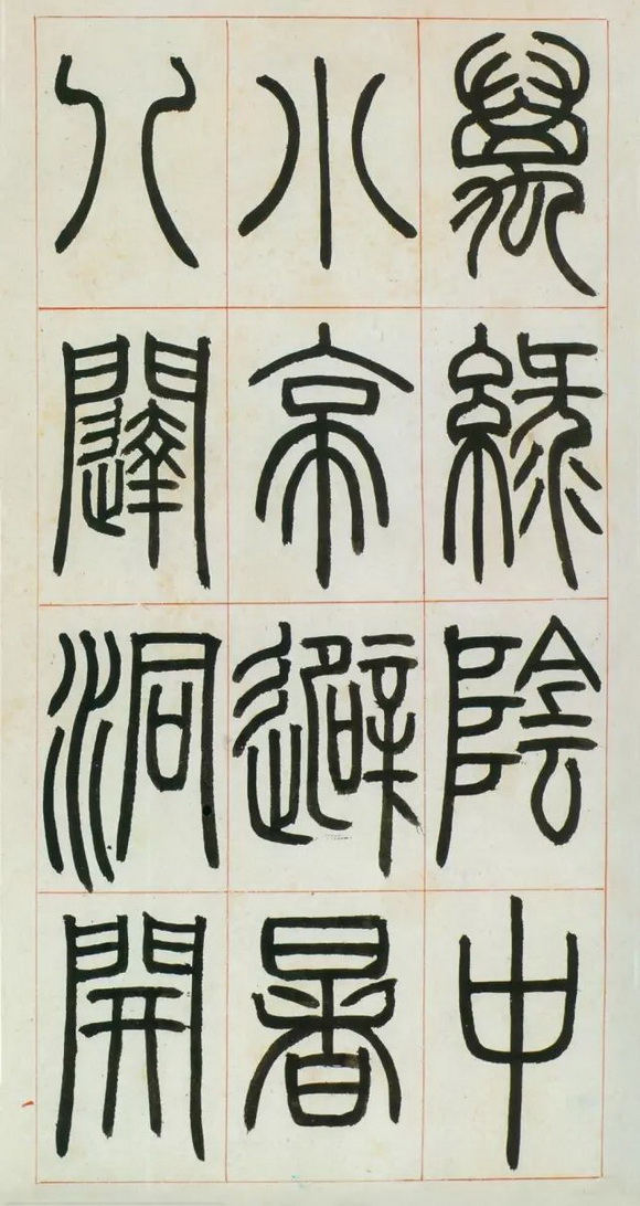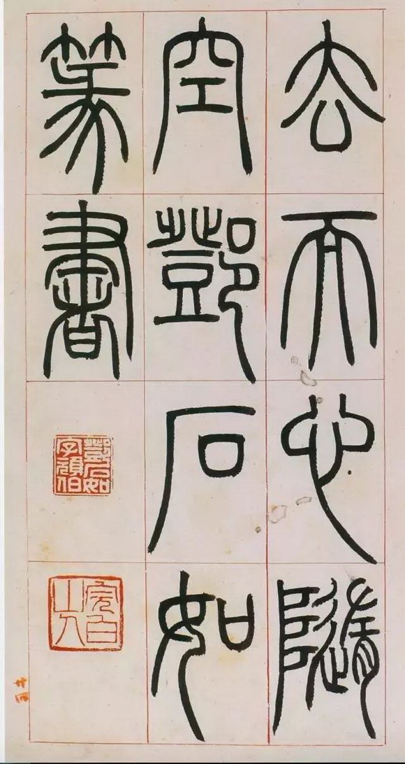 邓石如为清代碑学书家巨擘,擅长四体书,其书法艺术是我国书法史上一座杰出的丰碑。其篆书初学李斯、李阳冰,后学《禅国山碑》、《三公山碑》、《天发神谶碑》、石鼓文以及彝器款识、汉碑额等。他的篆书纵横捭阖,字体微方,接近秦汉瓦当和汉碑额。