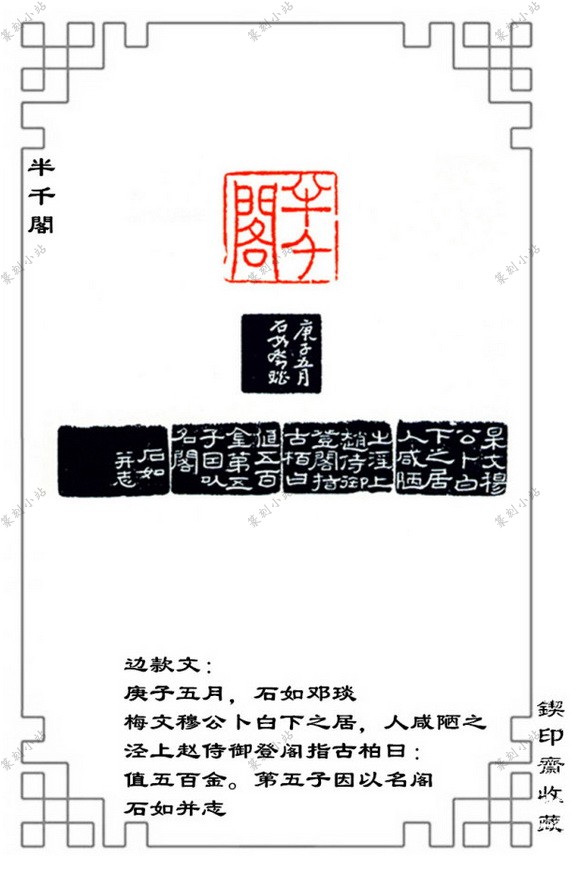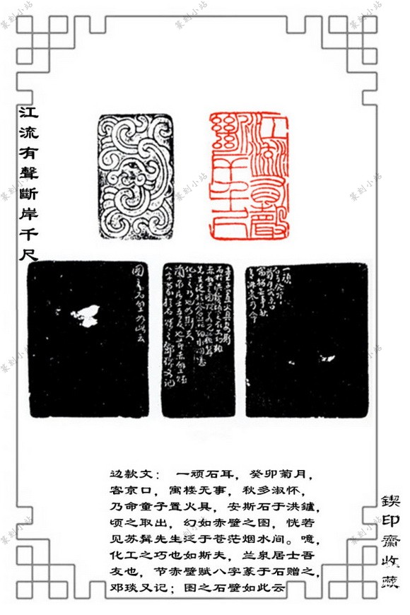 邓石如印谱,鍥印斋收藏,精选50品印蜕边款附边款释文 邓石如(1743—1805)清代篆刻家、书法家,邓派创始人,安徽怀宁人。初名琰,字石如,避嘉庆帝讳,遂以字行,后更字顽伯,因居皖公山下,又号完白山人、笈游道人、凤水渔长、龙山樵长,少好篆刻,客居金陵梅镠家八年,尽摹所藏秦汉以来金石善本 。遂工四体书,尤长于篆书,以秦李斯、唐李阳冰为宗,稍参隶意,称为神品。性廉介,遍游名山水,以书刻自给。有《完白山人篆刻偶存》。 → 下载链接 (提取码:lttg) 页码: 页 1, 页 2, 页 3, 页 4, 页 5, 页 6, 页 7, 页 8, 页 9 印谱.教程.技法 - 分享 加微信获取:wenbaozhai365