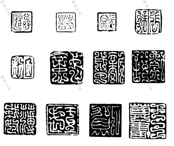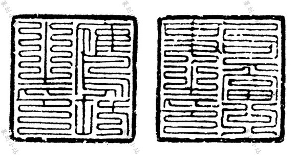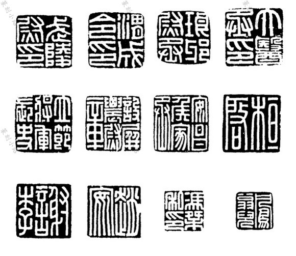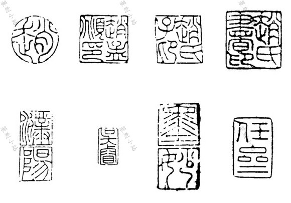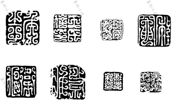 据文献记载,篆书体系有近百种写法,当然其中絶大多数为少数好事的文人所为。中国古代印章的印文之体,常见者有十余种,罕见的数十种均仅见于清代钱桢的印作。不同文体的印文,所布局的印章具有不同的艺术情趣。