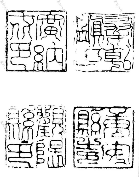 古玺文,是秦统一六国前所有玺印文字的统称。古玺文,其基本结构与先秦大篆相一致; 其体态既有自然形,也有就形形;其虚实和笔画取势,与当时的陶器、货布、兵器等文字相近, 变化多端,不拘一格,时有诡奇之趣。
