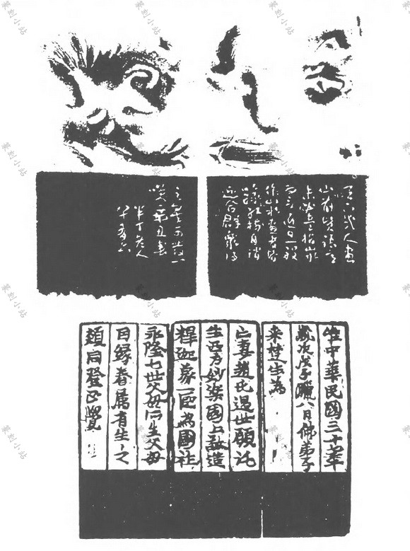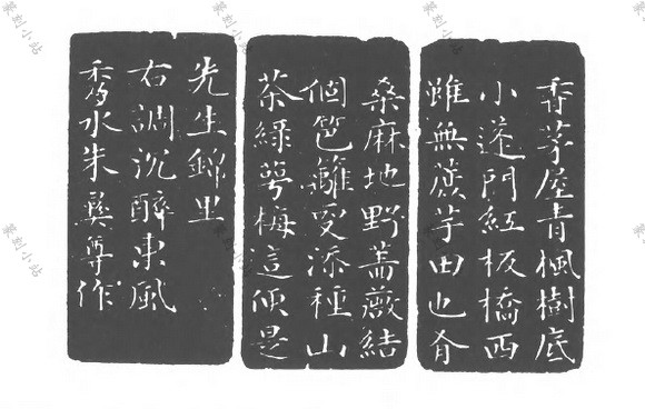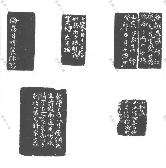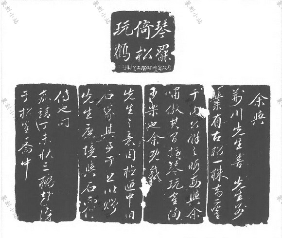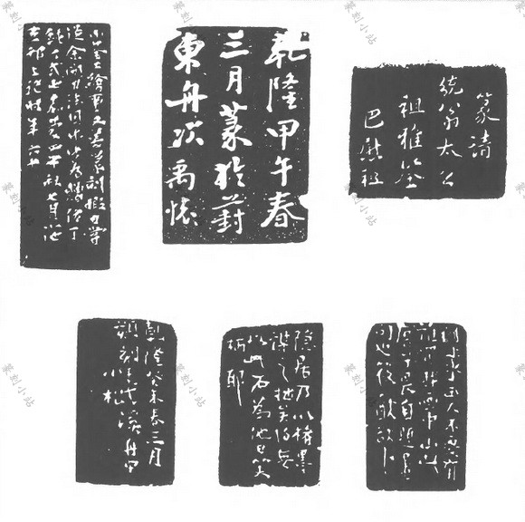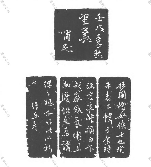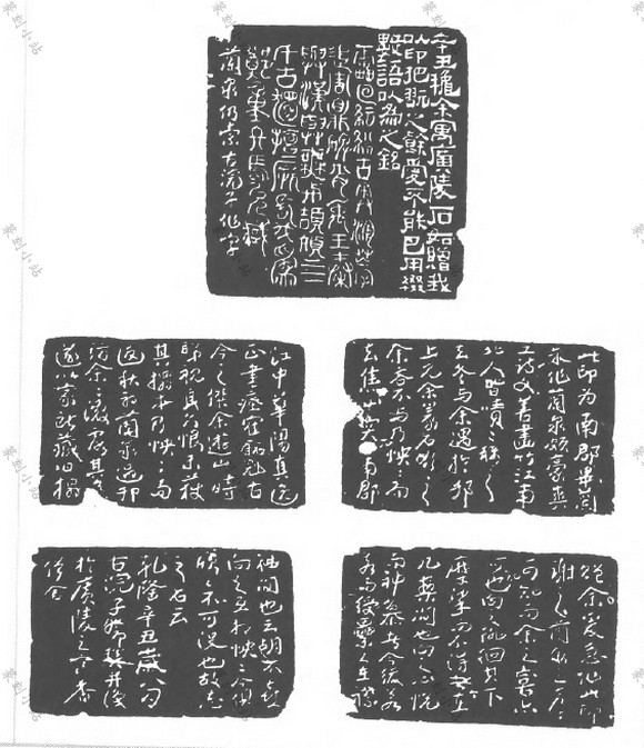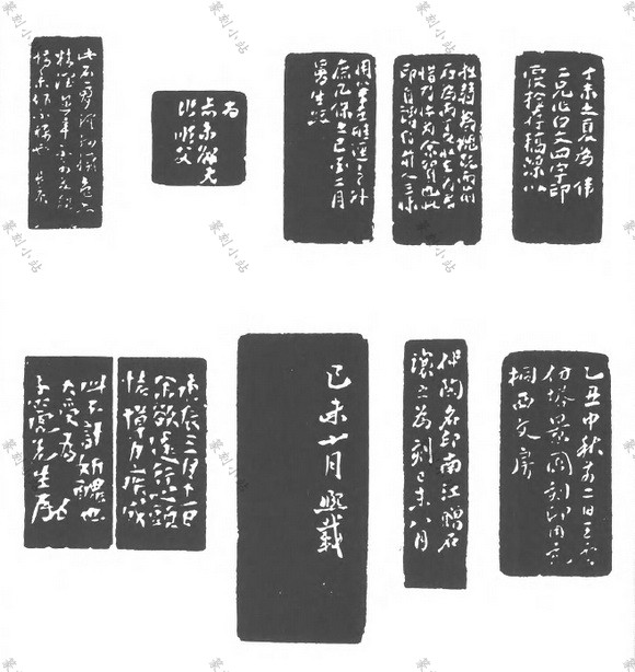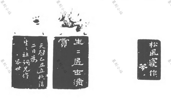 将二种或三种字体合用于一款者,为多体组合款。多体组合款的内容大多可分为两段,也 有两段以上者,每段内容以不同书体为之,意在区别内容之不同。多体组合款,在近现代颇为多见。将两种或三种字体同时用于一款,不仅可使款文的不同内容更醒目,更可增添款面书法 形式的美感。