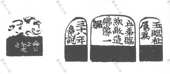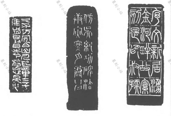 篆书款,多出现在私印之中,晚清和近现代出现的量最多。以篆书入款,目前所见的最早 资料当属南宋时期的私印“张同之印”。刻篆书款的好手要数赵之谦、吴昌硕、赵时橺、来楚 生诸家,或用籀书,或用小箓,或苍浑,或秀劲,各具擅长。