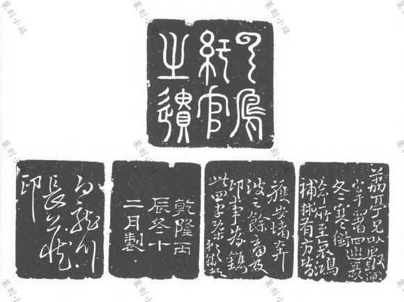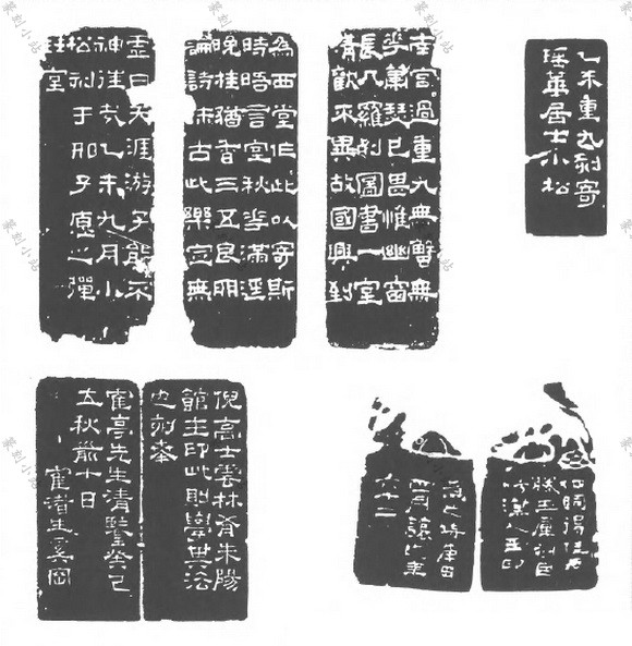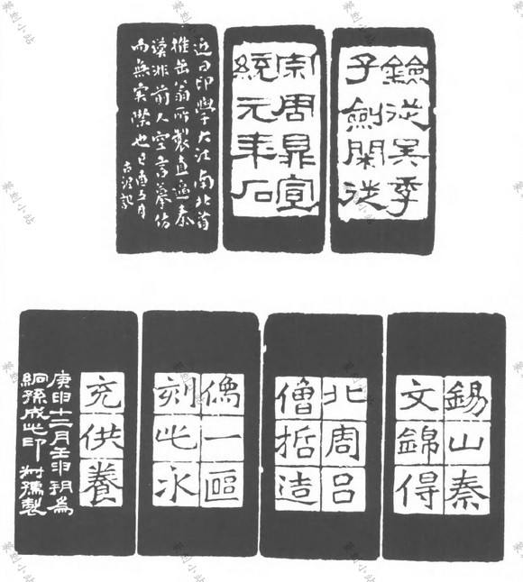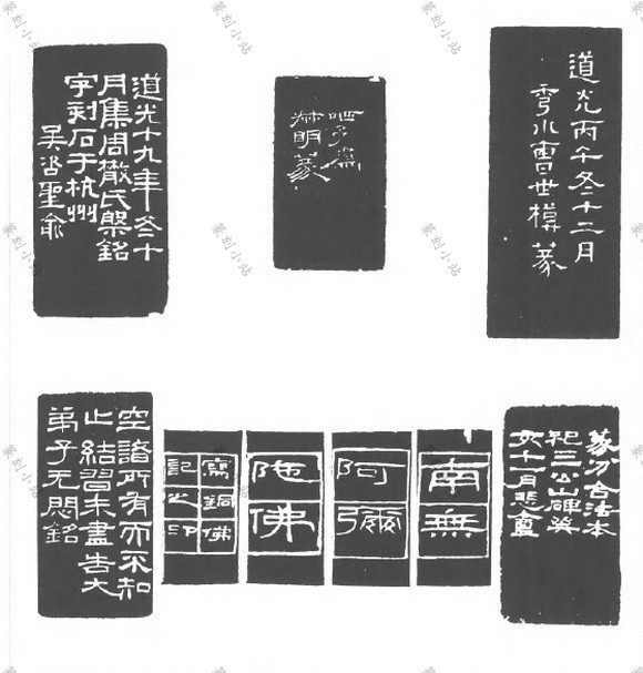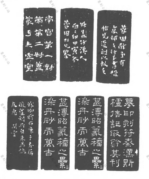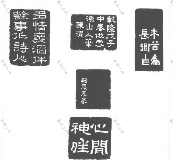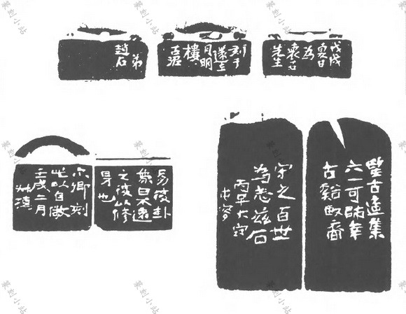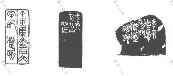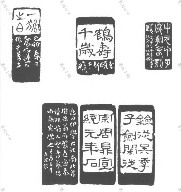 隶书款,在古代官印中时有出现,明至现代印家用量也颇多。在印史上,隶书款成就卓著 者有邓石如、黄易、陈鸿寿、吴熙载、赵之谦、赵时橺、王提、邓散木、来楚生等印家。诸印 家的隶书款,或以形胜、或以意胜,或以趣胜,反映了不同的审美意识,表现了不同的美感。 隶书印款,与汉碑刻、墨迹相比较,既有共同点,又有相巽处,可谓别具情趣。