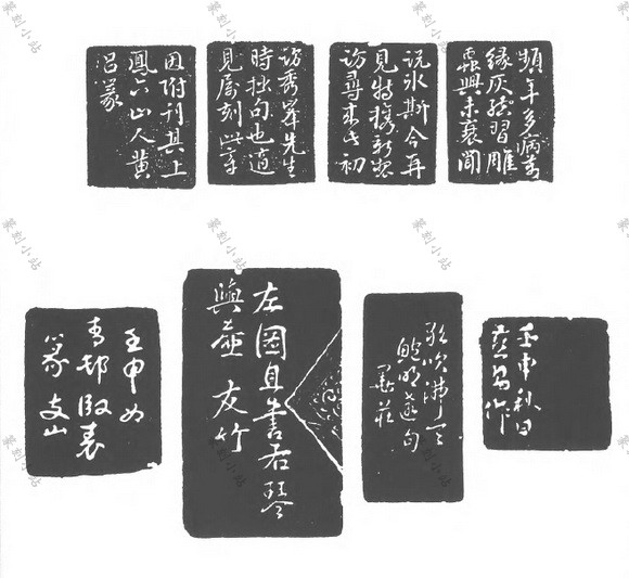行草书款,在明中叶起大量出现,至今不衰。明代文彭之作清丽洒脱,清代高凤翰、邓石如之作浑古厚重,丁敬之作生辣劲涩,吴熙载之作明快叙逸,近人来楚生之怍苍老茂劲,成为不同时期的代表性风格。行草款虽出于刀刻,却也笔势连绵,气贯字襄行间,在意趣方面与行草书墨迹不尽相同,也颇多可人之处。