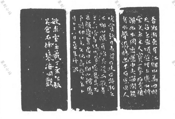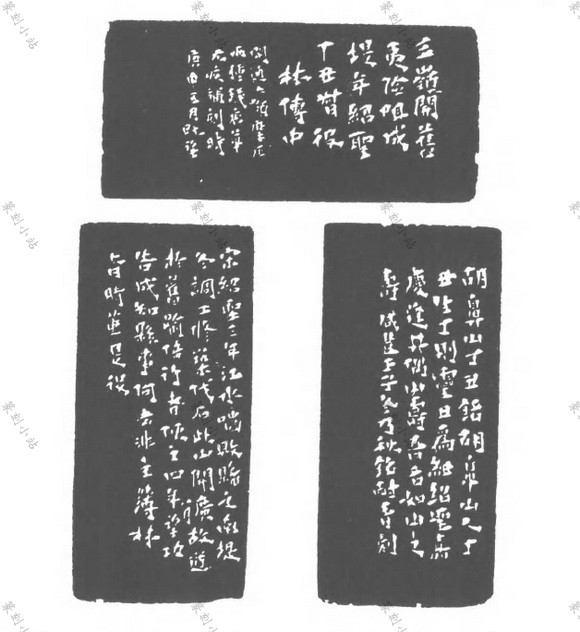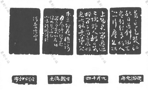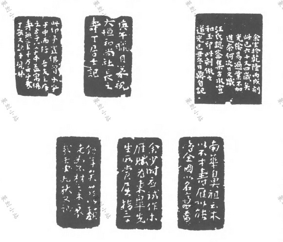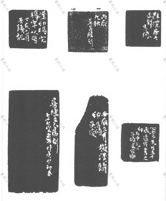 多次跋款,款文的佈排与手卷、册页后的连续题跋 近同。印款的佈局,与传统的书法和绘昼中的落款既有相通之处而又不尽相同,已完全形成了 一个独特体系。