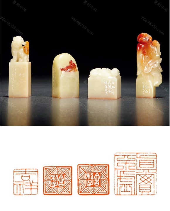 845 高式熊刻寿山石闲章四方