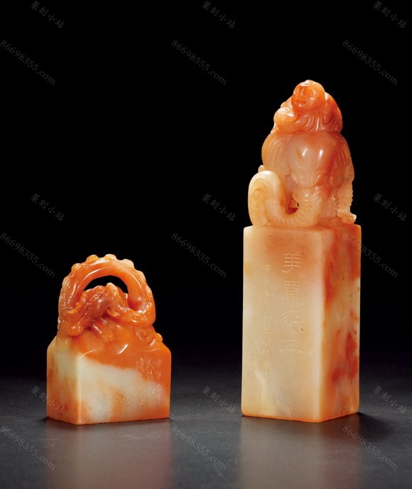 1169 高式熊刻老挝石闲章二方