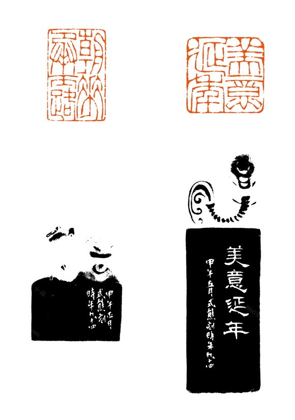 印文:1.朝花承露;2.美意延年