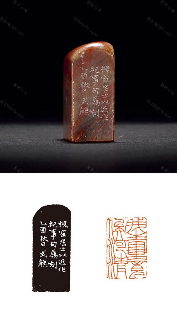 边款:枫窗居士以近作纪事句属刻,乙酉秋日,式熊。