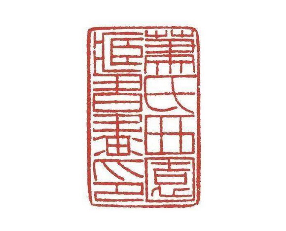 “肖氏西园藏书画印”(图6),黄牧甫刻,冲刀。朱、白文线条形态和精神的一致是篆刻家成熟的标志之一,而形态、精神的一致当然是因为刀法的一致。典型的黄牧甫朱文线条和白文线条在刻制上是一样的,只不过运刀方向不同罢了。至于难点也是平直线条上的点状隐然起伏。这种点状隐然起伏的重要性和制作方法和白文线条一样,不赘述。和白文线条不同的是,黄牧甫朱文线条比较细,在起止(截面)的处理上我们不必考虑方中带圆,而只需方的切一刀,才得锋锐生拙之意。因为印泥有一定的厚度,细线条的方锐截面不会出现太单薄的感觉。如果我们在刻制时就预留一定的圆度,那钤盖的效果就没有方锐的生拙感了,会过于圆润。