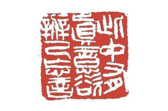 “楚园’(图17),吴昌硕刻,冲切兼用。虽说是冲切兼用,但从表象上看却是冲也不酣畅,切也不明白,这一是因为吴昌硕的刻刀相对钝;二是因为走刀比较慢;三是因为执刀比较斜,刻出线条的坡度平缓。这三者已经致线条的锋棱感不明显,再加上刻完以后的“做”,使线条的火气全退,更呈圆润厚实了。吴昌硕篆刻的用刀,实际上与吴熙载很接近,只因为刀的厚度不同,运刀的速度不同造成线条的差异。吴昌硕篆刻线条是高度再现石鼓文,读者能体会石鼓文的精神,便能体会其线条之妙。吴昌硕是背线下刀的,其线条的起伏顿挫,是运刀停顿、反复冲切兼用再加上做形成的。这一点与齐白石向线下刀造成进裂是完全不同的,虽然在线条形态上,有时候感觉差不多。