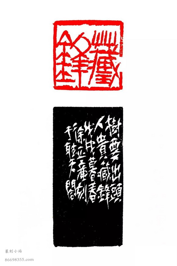 藏锋 (3×3cm) 青田石,局部有向线下刀的刻法,所以线条参差错落的程度比较大。