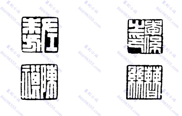 两套两面印,由大小两颗两面印套合成一个整体,印语方面有姓名.吉语与表字.吉语、表字.谦称与姓名.吉语、表字.肖形与姓名.表字三种常见的配合之法。