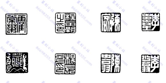 6 姓名.谦称.名印.名书简.名书简.书简(小印面);7 姓名.谦称.表字.姓名书简.姓名书简.书简(小印面);8 姓名印.姓名.表字.姓名书简.姓名书简,书简(小印面);9 官.姓氏书简.姓名书简.书简.印完.姓氏(小印面);10 官职.谦称.姓名书简.姓名书简.名书简.印完(小印面)。