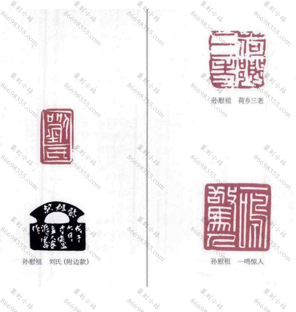 近年,慰祖兄推出了几本厚厚的印学专著, 这是他半生的心血所聚,尤其是研究中的一些 原创性的重大突破,如对马王堆汉墓残缺封泥 “利豨”和三号塞主身份的破译,对《淳化阁 帖》收藏印的断代结论,对古代封泥的系统研究 以及对汉晋官印分期、唐宋元官私印的鉴定整 理等成果,都引起了学术界的震动。在如今学术 界、艺术界人心浮躁,许多人热衷于短期行为、 泡沫效应的时风中,作为长期从事文物工作的一 名研究员,慰祖兄能践行“板凳须坐十年冷”的 为学之道,独立不移的在自己脚下挖一口深井, 展示出自已息心静气的治学精神和人格魅力。他 在学术上的一系列成果正是来自于此。他在学术 界、艺术界为人知晓、受人钦服也完全是因为实 实在在地向社会不断地奉献着自己的“产品”, 而不是张扬。这是圈内人皆知的事实。