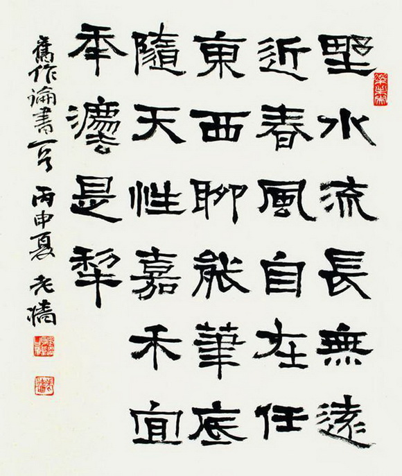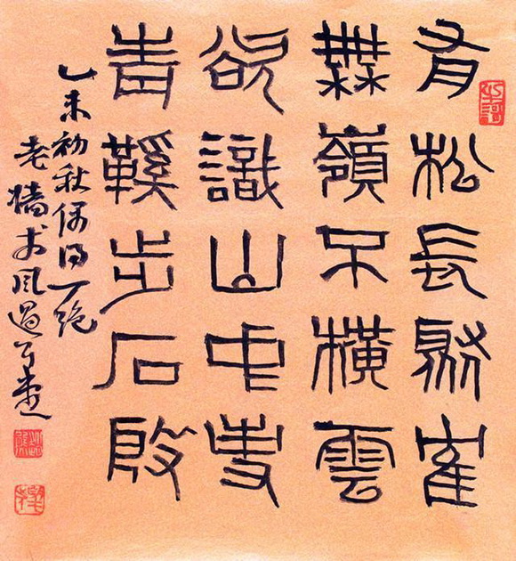 他从金石文字学入手,在对传统印章艺术形与神的研习和体味中进行了极扎实的训练,他的篆刻取法广泛,战国古玺、秦汉印章及明清各家,莫不潜心研习,具有深厚的艺术积累和造诣,使作品既有浓厚的传统韵味,又具有鲜明的时代精神。