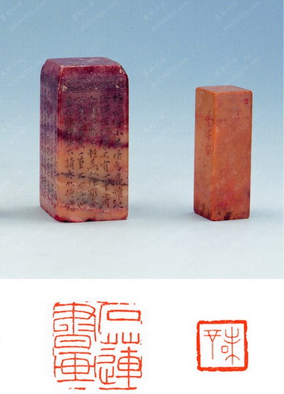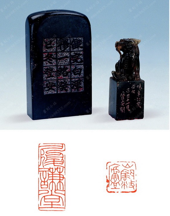 边款:1.崔霄正刻,丁酉二月登安。 2.絅裳先生肖印为拟汉人法奉正,甲午冬登安。 3.大壮刻为新吾先生。 4.弘一大师神足印西里安人邀韩居士登安上石志念焉,戊寅秋王尘无记。 5.登安刻。