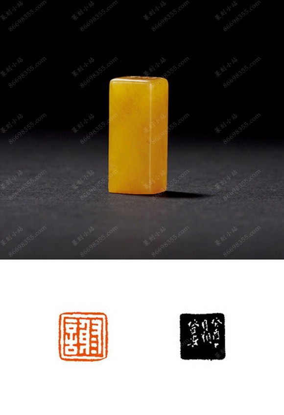 说明:田黄冻石,通透灵动,是田黄石中质地最佳的一类。此方田黄石章小巧可人,颜色纯正明亮,六面平整,线条流畅,雅致异常。更有名家治成小印,可用可赏,二美兼具。